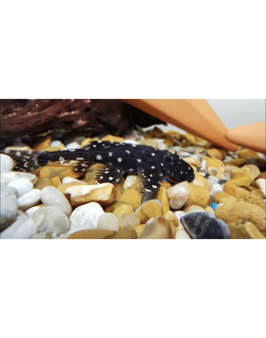 This gorgeous and rare pitch black pleco is quite slender in relation to it’s body length. Although they may appear to be delivate when young, as they grow up, they become much more robust. Small specimens have spots over the whole body. Spots may become relatively smaller and fewer in number with growth. Adults can grow pectoral fins in excess of 15 cm in length giving a remarkable look! Acanthicus adonis is distinguished by having a more pointy vs. rounded snoutolor differences. This is not a dwarf pleco, but considered a larger species and a superb display fish for large aquariums or public aquaria.