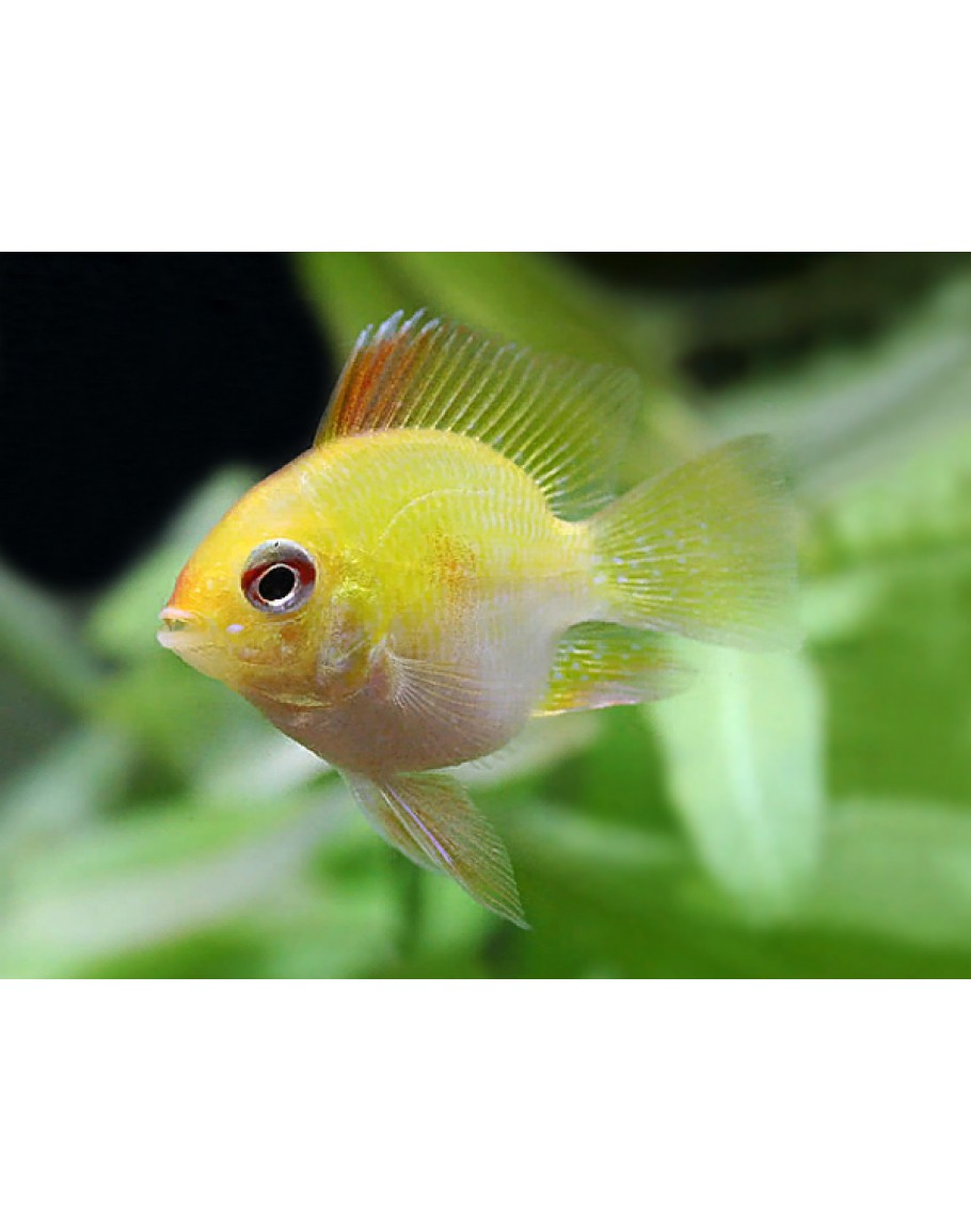 (Mikrogeophagus ramirezi) are native to South America, where they inhabit the slow-flowing waterways of the Orinoco River basin in Colombia and Venezuela. These bodies of water are warm, acidic, and densely vegetated. The fish favors tannin-stained environments, like Blackwater river, that are sheltered from the sun.