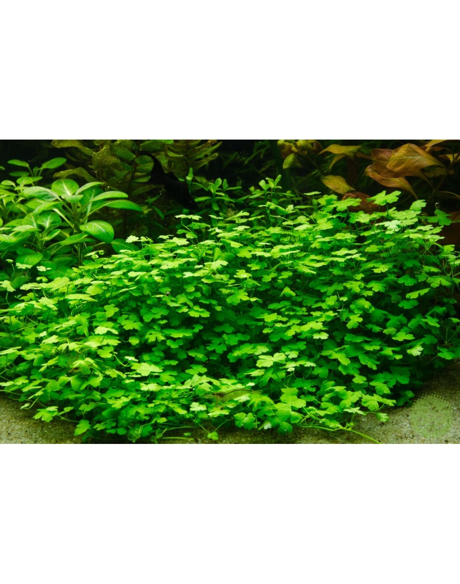 Hydrocotyle Japan was made famous due to its frequent usage by famous aquascapers such as Takashi Amano. It is characterized by its clover-like leaves which can grow into compact bushes of green. This plant is versatile and can be used in the foreground, midground or background. It is undemanding and grows fast, often out-competing and overgrowing the tank if left untrimmed. By frequently trimming new growth and using high light with CO2, the plant can stay low growing and create a carpeting effect over the foreground.