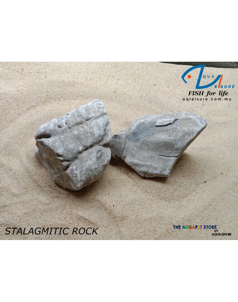 A stalagmite is a type of rock formation that rises from the floor of a cave due to the accumulation of material deposited on the floor from ceiling drippings. Stalagmites are typically composed of calcium carbonate, but may consist of lava, mud, peat, pitch, sand, sinter, and amberat.