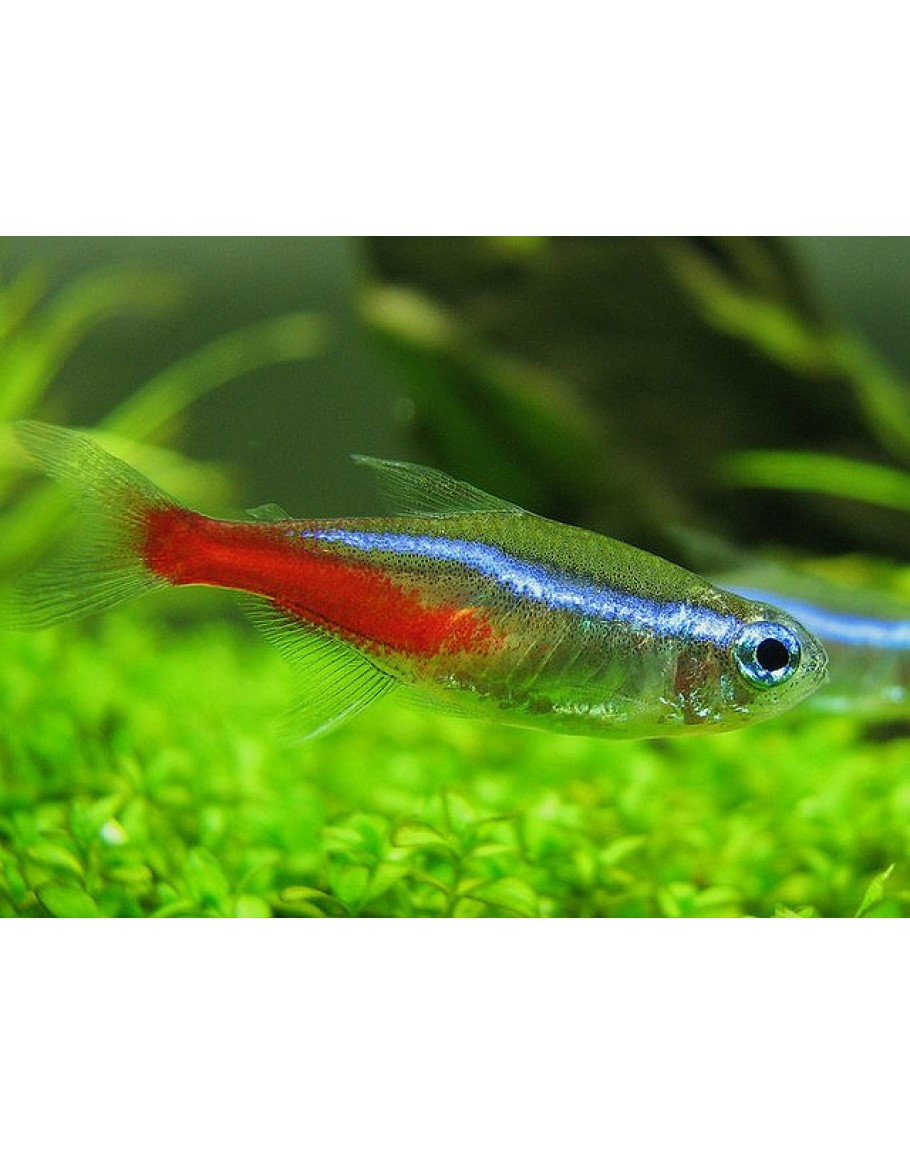 The neon tetra is a freshwater fish of the tetra fish family. Neon tetras have vibrant blue bodies with striking red markings from the belly to the tail.
