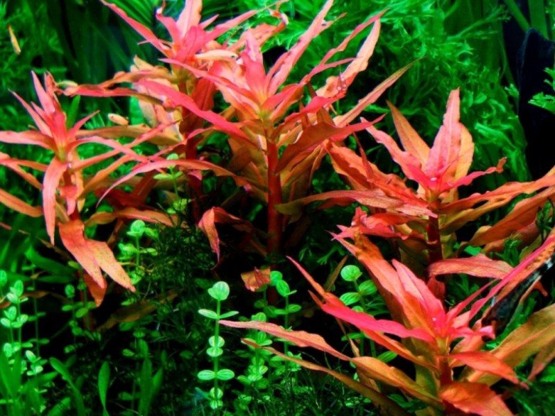 Ammania gracilis will display beautiful color given the proper conditions. It is recommended to supplement iron and micronutrients for these plants to see best growth and color. They will also exhibit the best color when nitrates are low, but phosphate and micronutrients are high. Ammania gracilis will grow best with CO2 levels around 25-30ppm. Soft and acidic water is preferred, but this plant is hardy and can adapt well to extreme conditions. Without sufficient lighting the plant will become pale green and lose its bottom leaves.