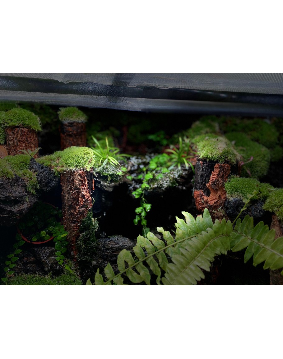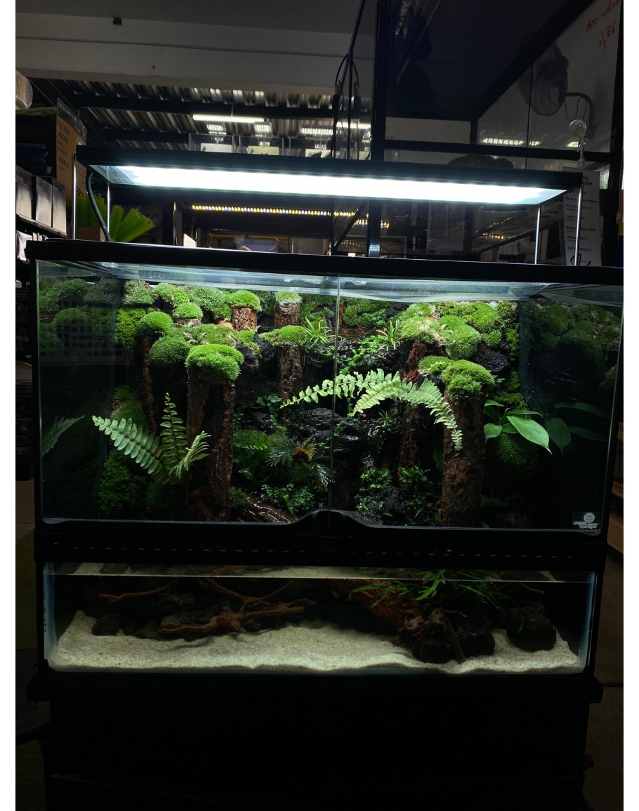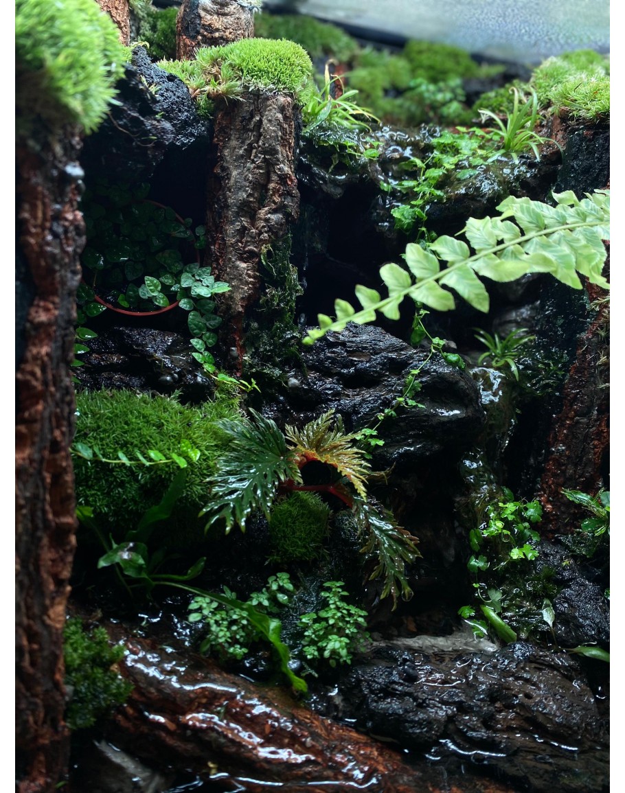 -Planted with bun moss, star moss, ficus pumila, fittonia, philodendron, begonia, variegated fern, trident fern, tripatita 'Japan', bucephalandra, & sagittaria subulata.